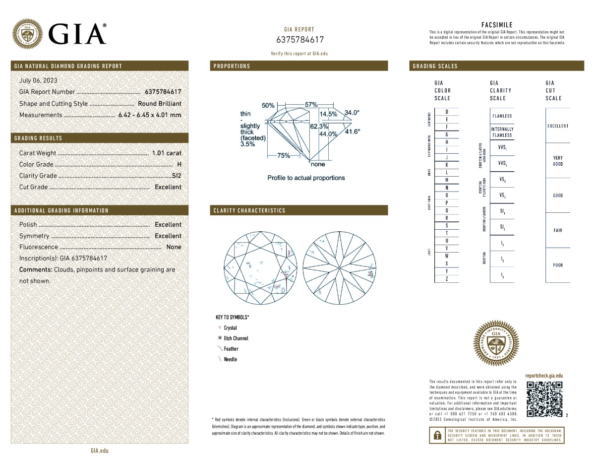 Round Shape, 1.01 Carat, H Color, SI2 Clarity