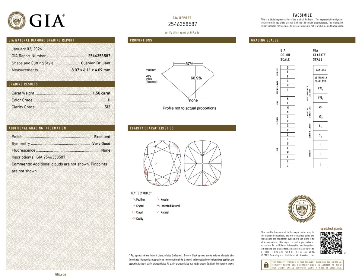 CB Shape, 1.50 Carat, H Color, SI2 Clarity