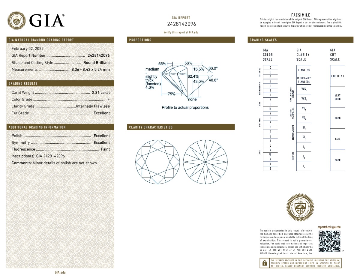 2.31 CARAT F COLOR-IF ROUND CUT DIAMOND