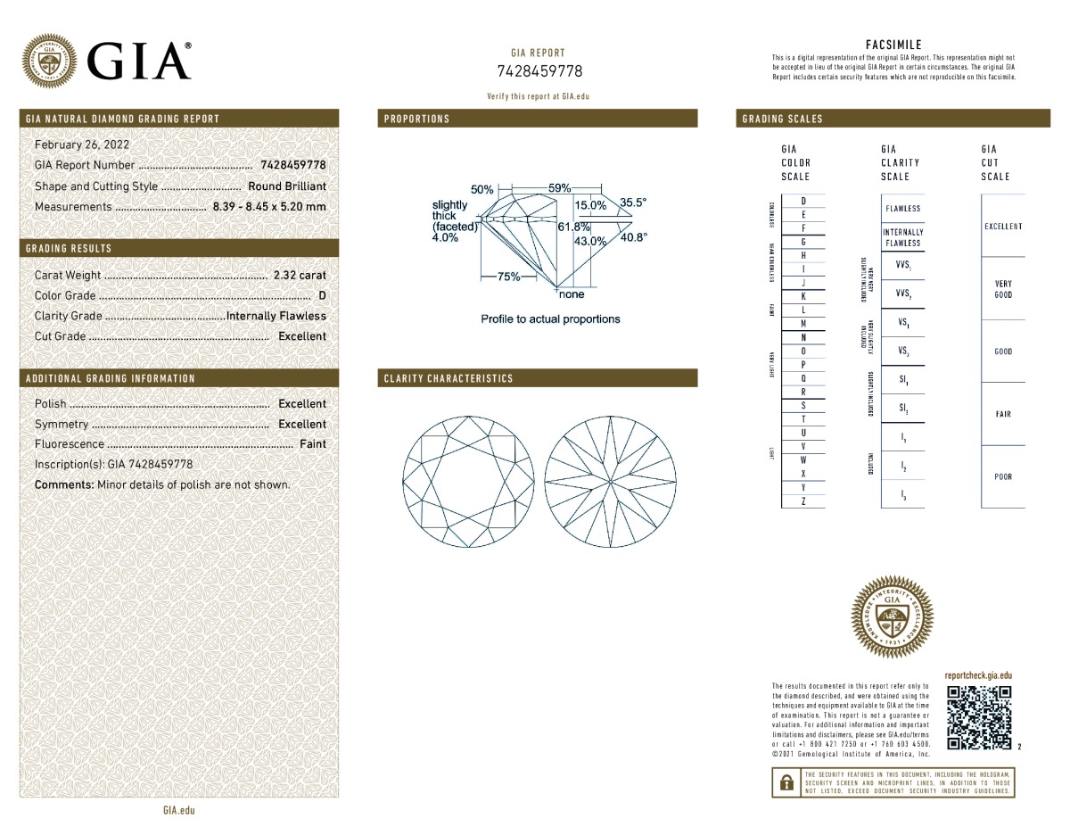 Round Shape, 2.32 Carat, D Color, IF Clarity