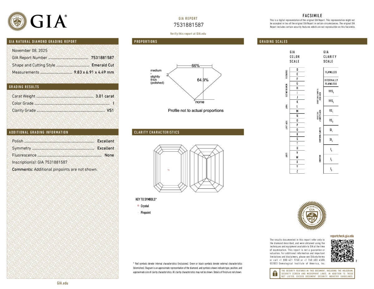 Emerald Shape, 3.01 Carat, I Color, VS1 Clarity