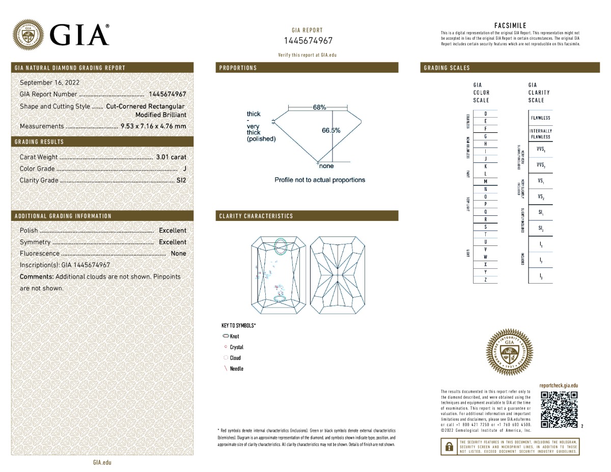 Radiant Shape, 3.01 Carat, J Color, SI2 Clarity