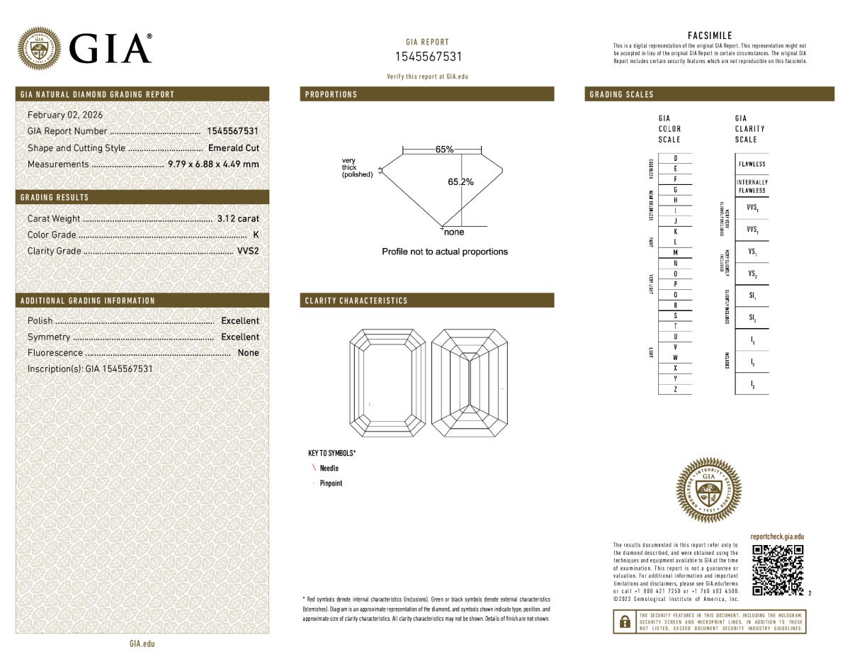 Emerald Shape, 2.16 Carat, K Color, VVS2 Clarity