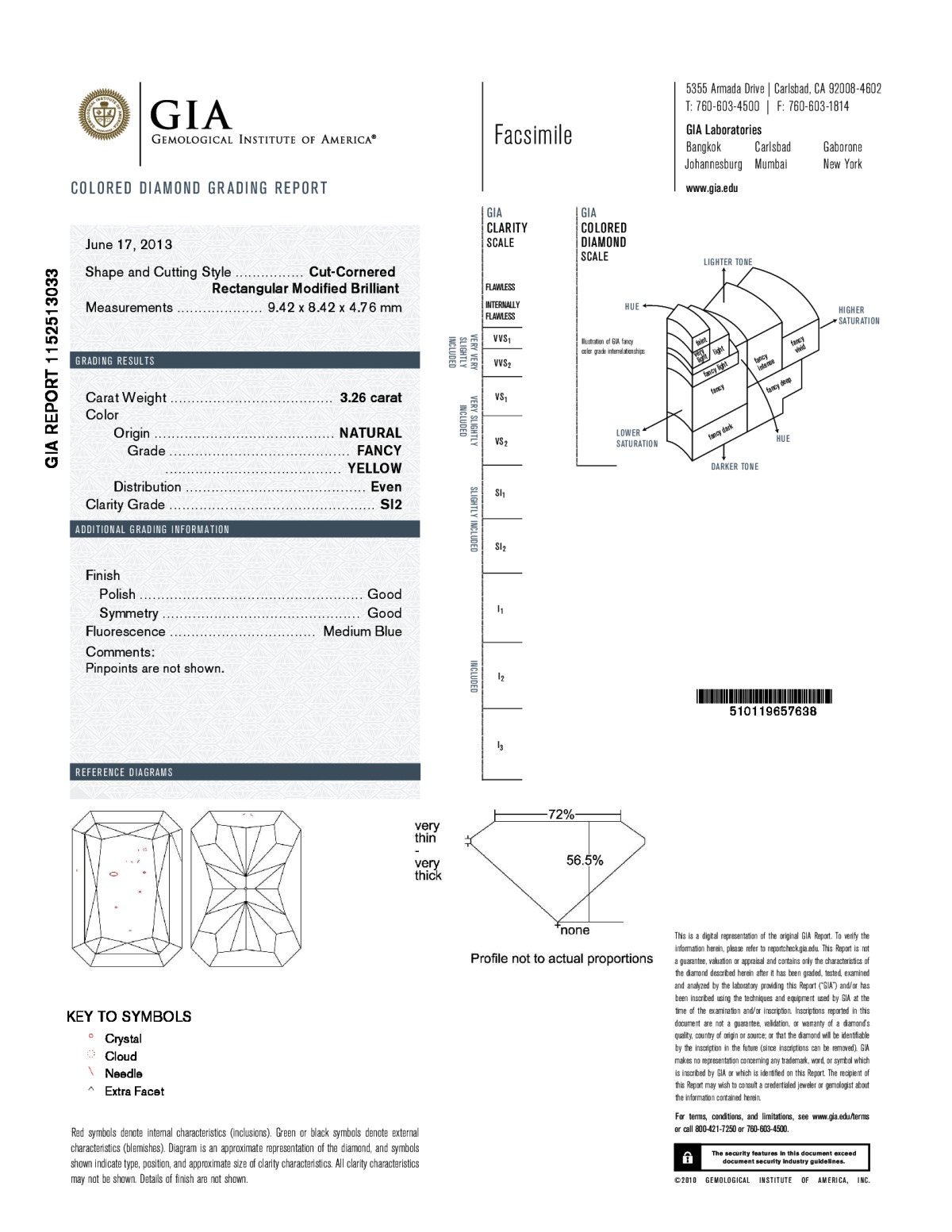 Radiant Shape, 3.26 Carat, Yellow Color, SI2 Clarity