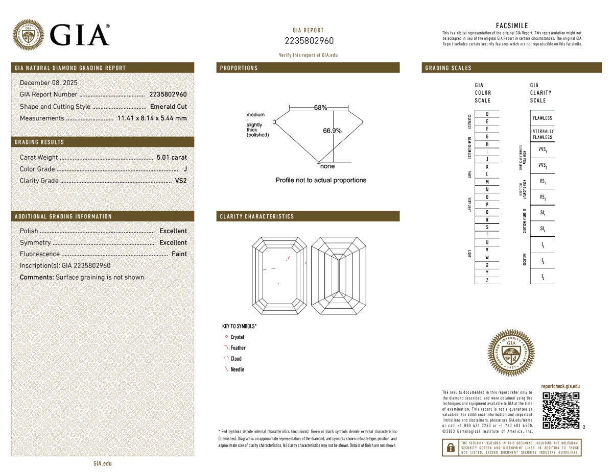 Emerald Shape, 5.01 Carat, J Color, VS2 Clarity