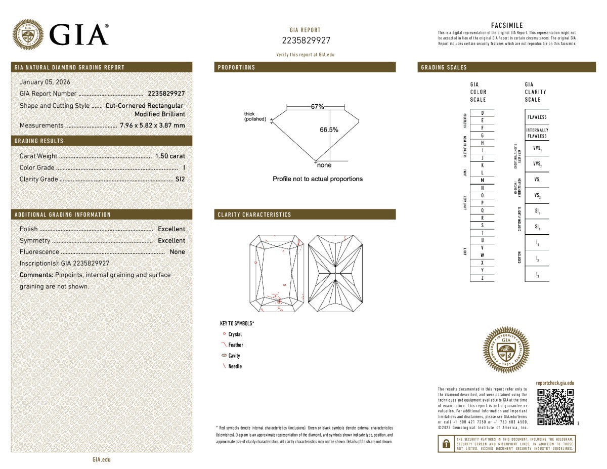 Radiant Shape, 1.50 Carat, I Color, SI2 Clarity